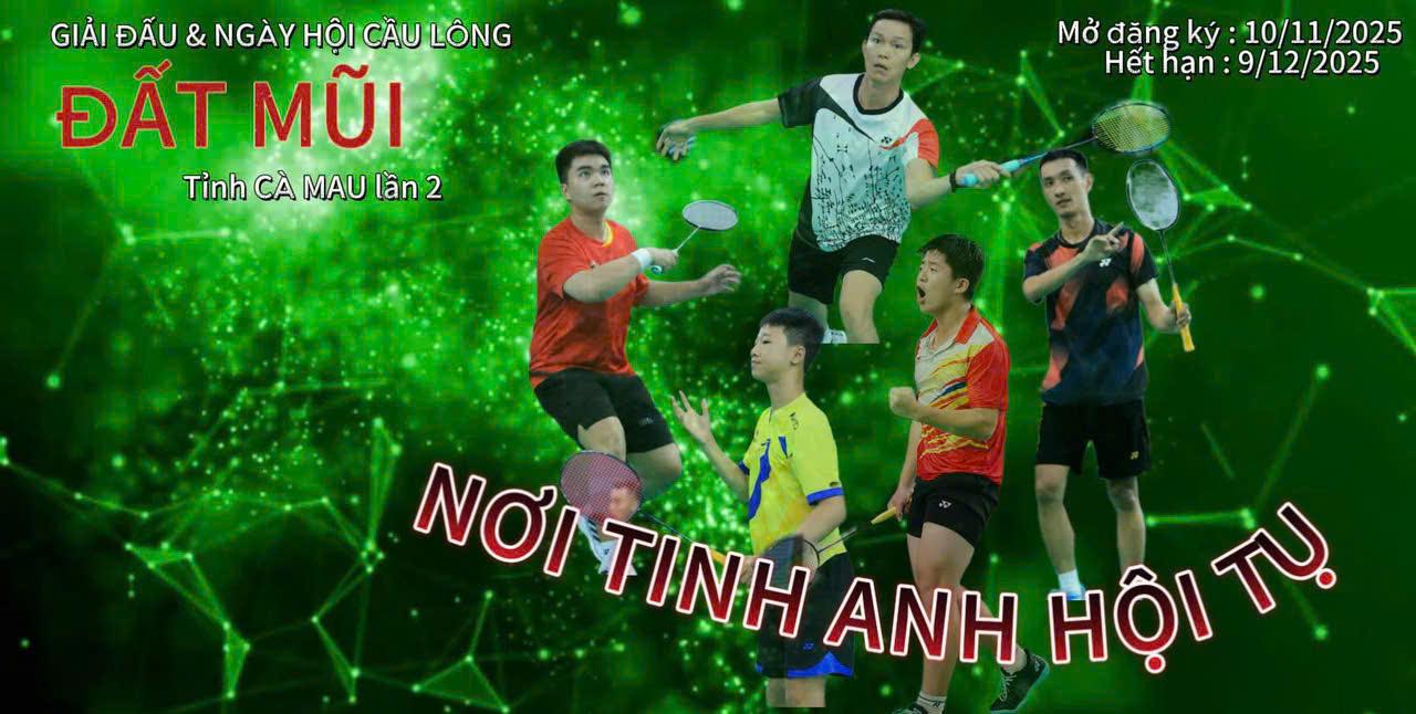 Giải Cầu Lông Đất Mũi lần thứ 2 mở rộng, diễn ra từ 13-14/12/2025 tại TP Cà Mau