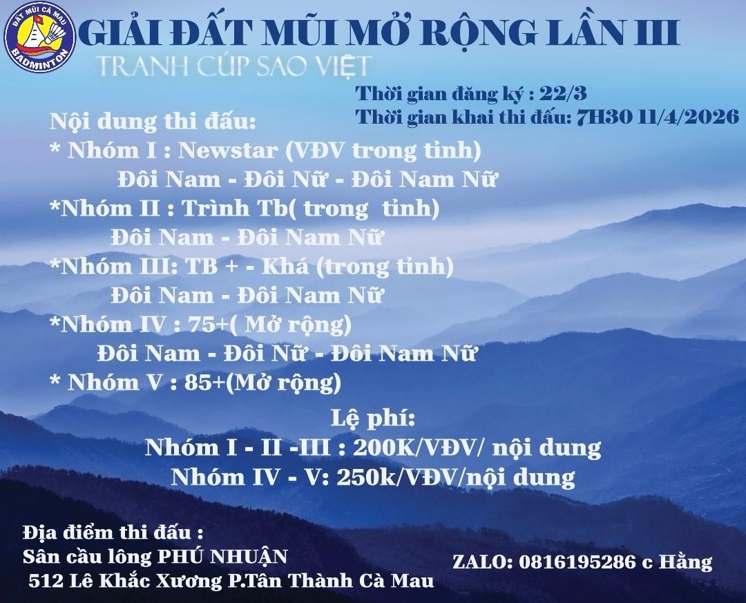 GIẢI CẦU LÔNG ĐẤT MŨI tranh cúp SAO VIỆT lần III