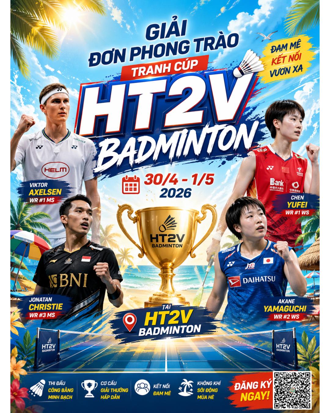 Giải Cầu Lông Đơn Phong Trào tranh cúp HT2V Badminton