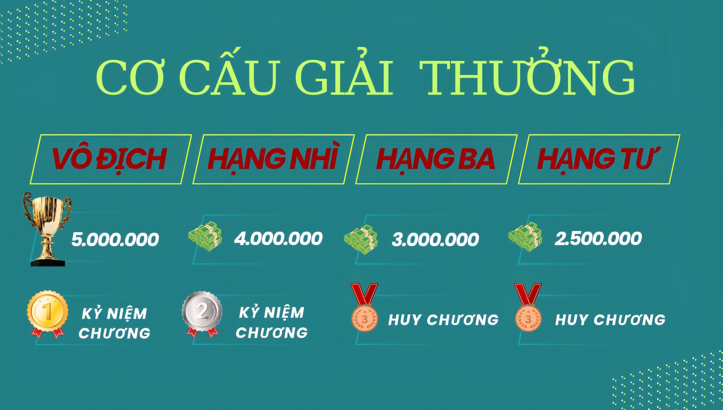 - Hạng Ba: 3.000.000 + Huy chương