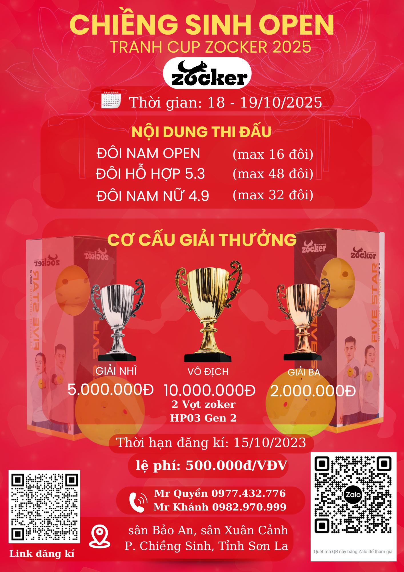 Nhất: 10.000.000đ + Cúp, Huy Chương, đôi vợt Zocker HP03 Gen 2