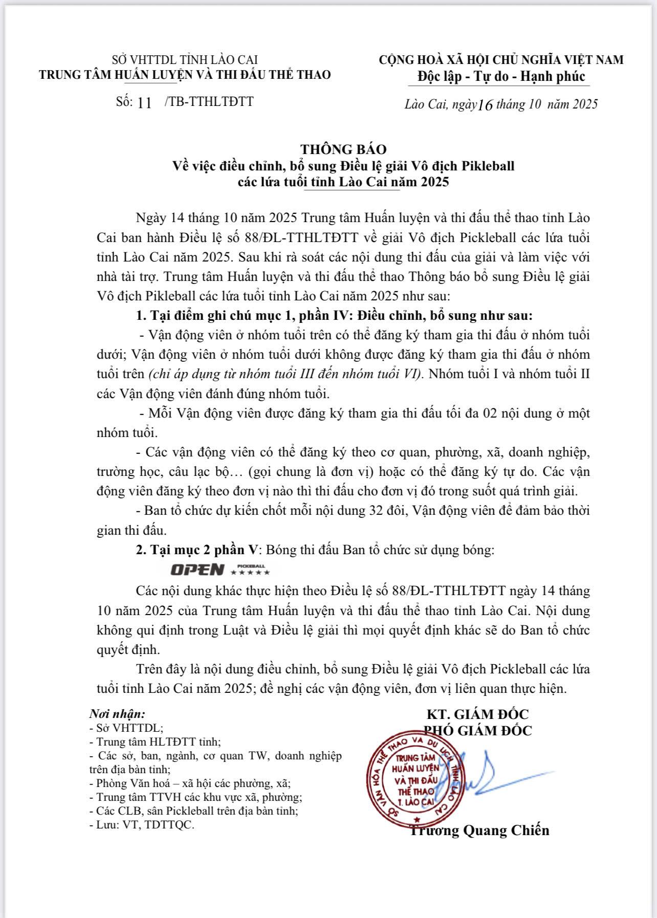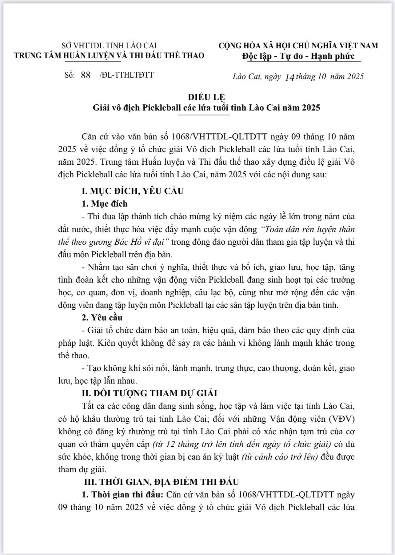 Giải vô địch Pickleball các lứa tuổi tỉnh Lào Cai năm 2025