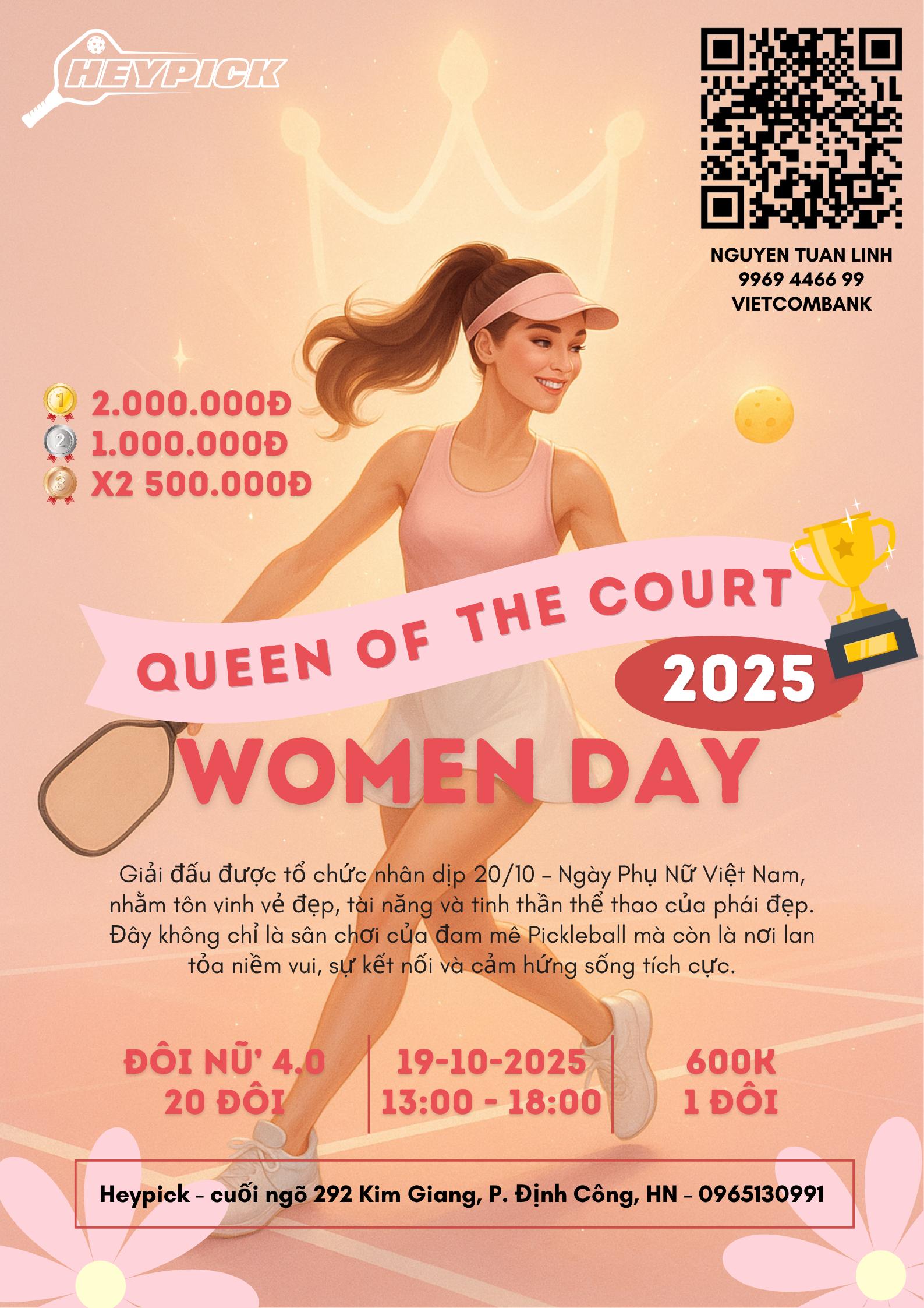 Nhân dịp 20/10 – Ngày Phụ Nữ Việt Nam, sân Heypick hân hoan tổ chức giải đấu Queen of the Court 2025, nhằm tôn vinh vẻ đẹp, tài năng và tinh thần thể thao của phái đẹp.