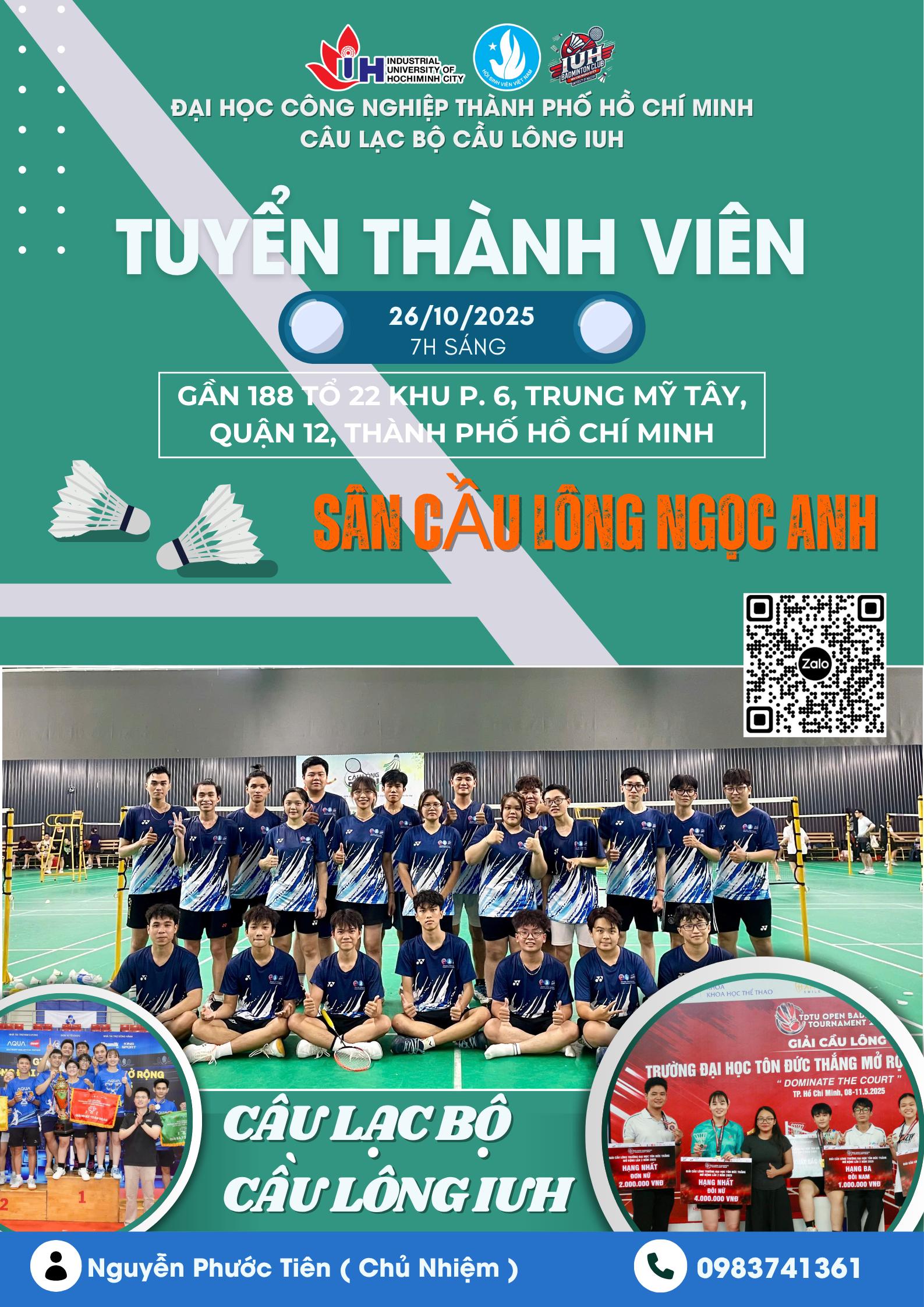 🏸 GIẢI CẦU LÔNG TUYỂN THÀNH VIÊN ĐỢT 1 – CLB CẦU LÔNG IUH 🏸